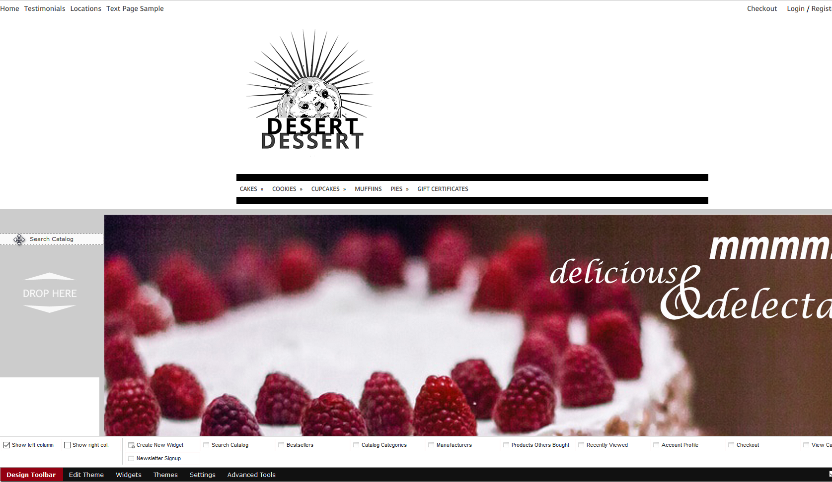 The other thing you'll notice in Cart Designer is the Design Toolbar at the bottom. There are 5 different primary options; Edit Theme, Widgets, Themes, Settings, and Advanced Tools. The sub-options will appear above each of them once clicked.