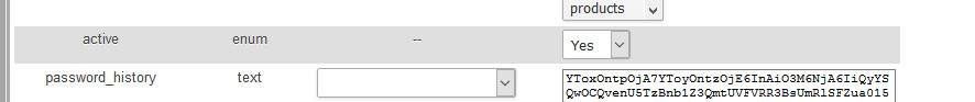 3. Look for the password row. On the right field, you will see the current password hash. Highlight and delete the password hash.