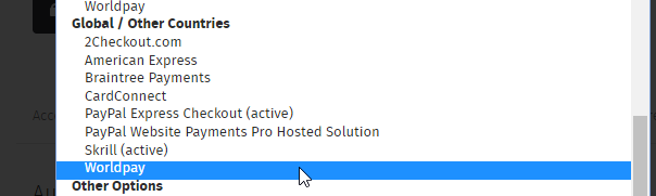 3 Choose WorldPay (Global) as payment gateway option