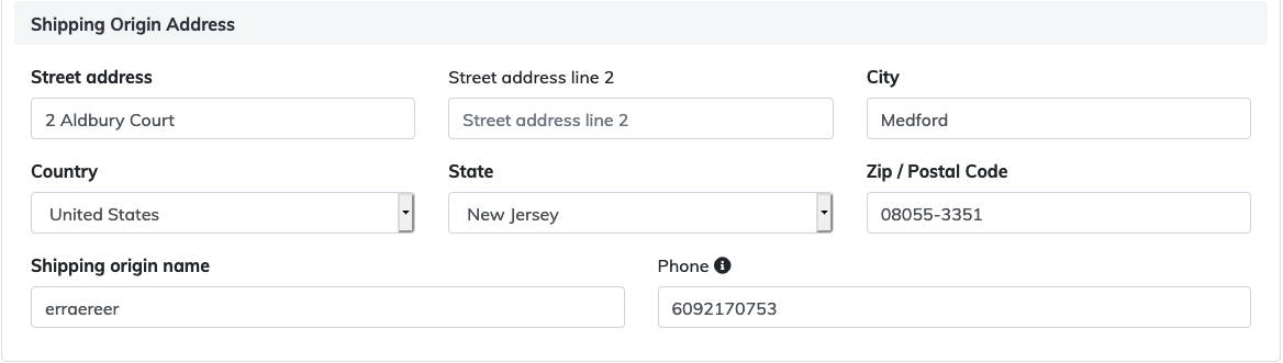 3. Fill in the physical address orders where they will be shipped from. Real-time shipping calculations are based on the weight of the order, where it's shipping from (origin), and where it will be shipped to (destination). After you've filled this out, select Save.