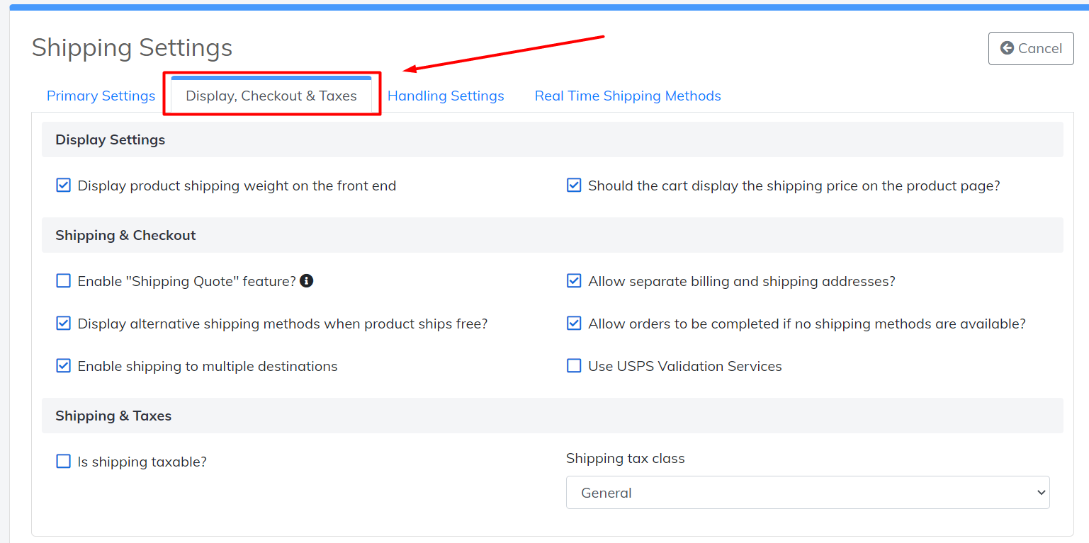 - Is handling fee taxable?: When enabled, this setting allows you to determine a Tax rate to be applied to shipping.