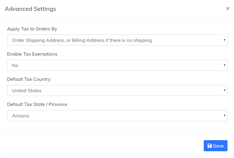 • Default Tax Country/State - Having this set will make it so that your tax rate is set to the Country/State selected in the fields below. If that happens to be the Country and/or state you're charging tax for, then tax will apply at checkout until the customer selects a different country/state. This setting can cause issues, because you may see people in other states complaining about a tax charge. However, if they select their state, the tax charge will go away.